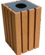 Fabricado a base de madera plástica (polietileno) con tapa metálica Medida de .40m (frente) x .40m (fondo) x .60m (alto).