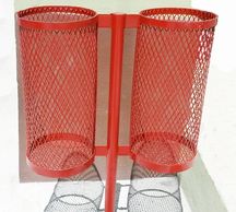 Fabricado en acero al carbón a base de malla desplegada planchada. Medida de cada cesto .60m (alto) x .30m (diametro). Altura total .80m. Colores a elección.