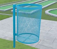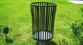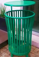 Fabricado en acero al carbón a base de malla desplegada planchada, soportado a través de tubo rolado. Medida de cesto .60m (alto) x .40m (diametro). Altura total .80m. Colores a elección.